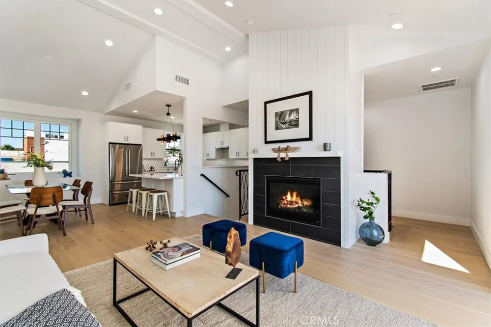 Featuring a reverse floor plan and private patio with an extra wide three panel outdoor panel door for indoor/outdoor feel. Open floor plan entertaining space stretching from the kitchen to the living area. Kitchen features custom cabinets with pullouts and a clean backsplash, microwave drawer, barstool seating, Italian appliances and a lot of countertop space. CATV wired for satellite, phone, data and alarm. Hardwired for speakers in the living room and master bedroom, exterior security cameras and ring doorbell. 2 bedrooms on the first floor, 2 bedrooms on the second featuring a master suite with a walk-in closet, fireplace, bedside charging outlets and an ensuite large master bath with a soaking tub. Central vacuum installed and A/C ready (not installed). Attached 2-car garage.